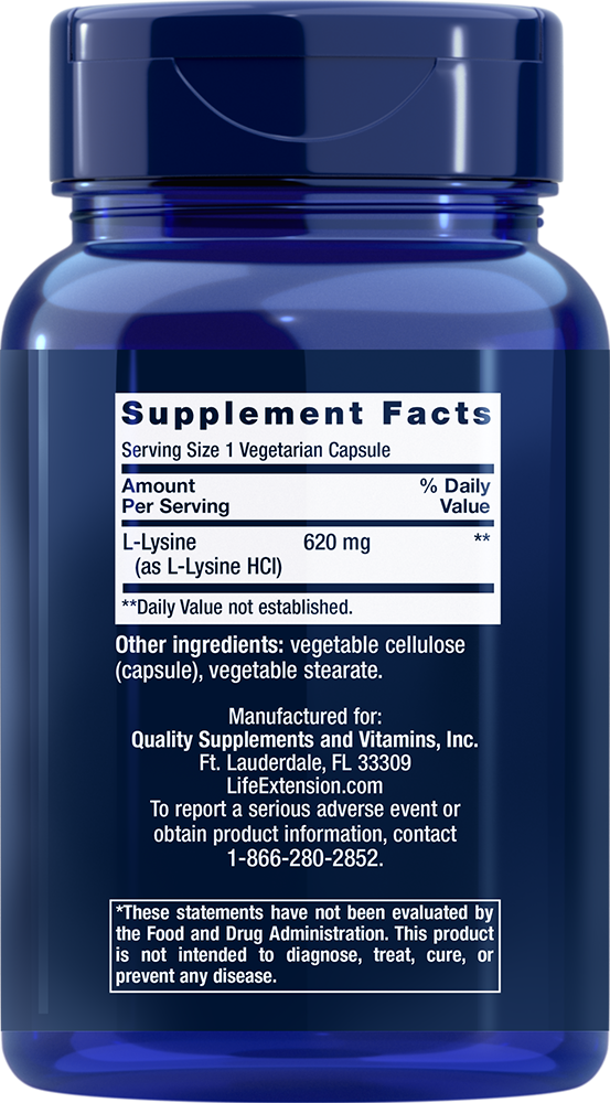 Fedezze fel a Life Extension L-Lysine kapszuláit, amelyek praktikus kiegészítőt jelentenek napi rutinjához. Minden kapszula 620 mg L-Lysint tartalmaz növényi alapú kapszulában, így természetes választás azok számára, akik tiszta összetevőket részesítenek előnyben.